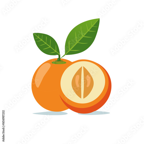 Loquat Fruits, Halved and Whole, with Green Leaves - Fresh Produce Still Life