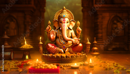 Lord Ganesha golden sculpture - ai generative