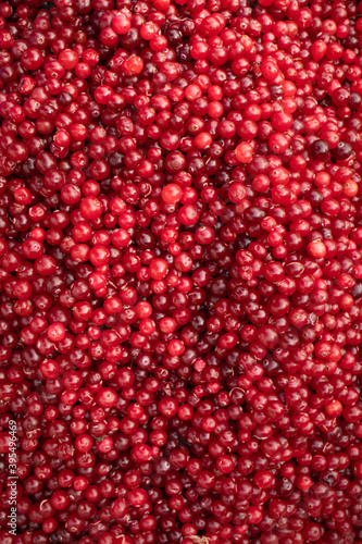 Lots of red ripe cranberries. Vertical photo for background.