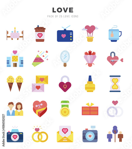 Love elements. Flat web icon set. Simple vector illustration.