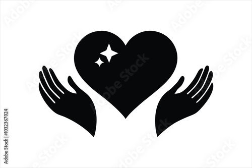 Love icon between two hand silhouette black vector art illustration.