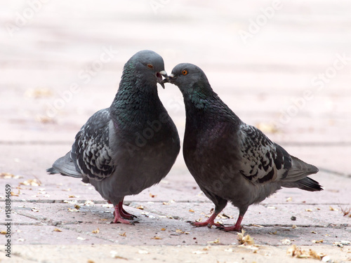Love of two pigeons on the sidewalk