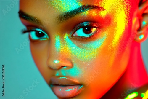 Lovely calm black girl - for ads, media and social networks use. Short haircut - bald head - no hair. Commercial commercial creative. Black woman concept art. Artistic black girl portrait.