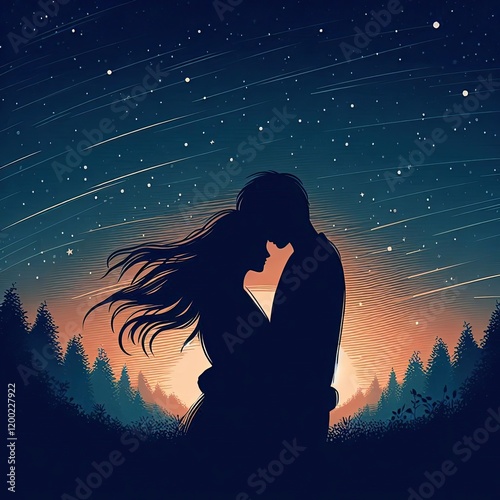 Lovers' Embrace in Night Landscape