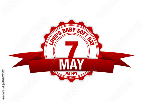 Loves Baby soft Day. 7 May ribbon calendar. vector red