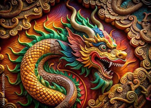 Low Light Thai Dragon Carving Wall Art - Luxurious Generative AI Image