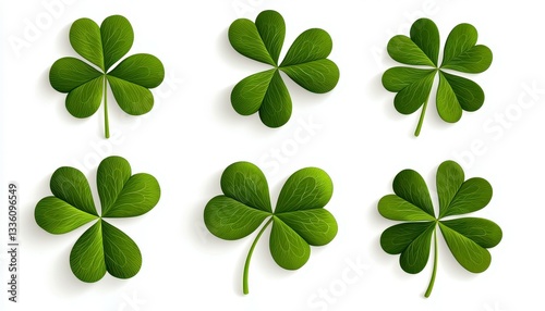 Lucky Clovers Collection of Green Shamrock Plants for Saint Patrick's Day Celebration Graphic Element