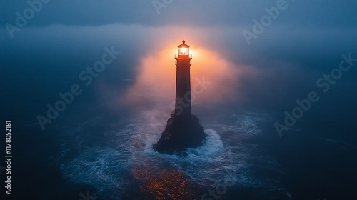 Luminous Lighthouse Standing Tall In Misty Ocean Waves