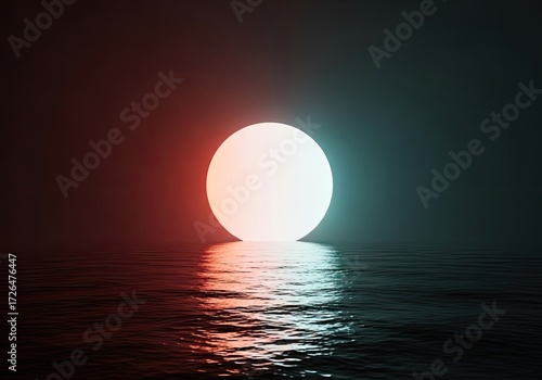 Luminous Sphere Reflecting on Dark Water Abstract Minimalist Calm