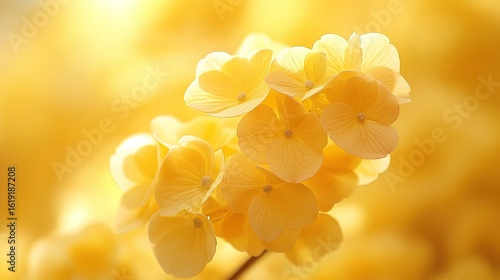 Luminous Yellow Hydrangea Cluster Bathed in Ethereal Golden Light