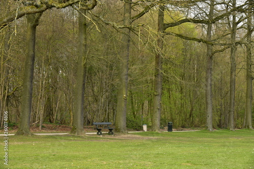 L'un des bancs le long de la rangée de hêtres au parc de Tervuren à l'est de Bruxelles