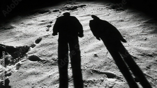Lunar Shadows: A Black and White Photographic Study of Two Astronauts' Silhouettes on the Moon's Surface