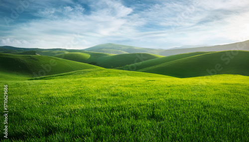Lush Emerald Grass Field With Perfect Texture Stretching Across Natural Landscape