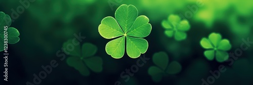Lush Green Background Featuring Delicate Shamrock Leaves for St. Patrick's Day or Nature-Themed Projects