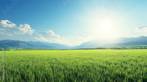 Lush Green Field Under Bright Blue Sky