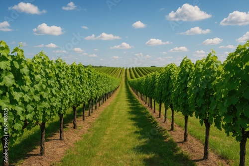 Lush green grapevine fields during the summer season