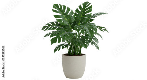 Lush green monstera plant in a modern pot, enhancing indoor decor with natural beauty