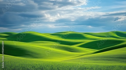 Lush Green Rolling Hills Under Bright Blue Sky and Soft Clouds