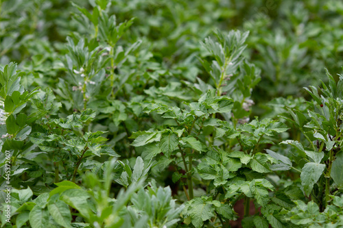 Lush green vegetation with dense foliage of wild plants in a natural environment. The fresh leaves and soft natural light create a vibrant and organic scene, perfect for themes related to nature.