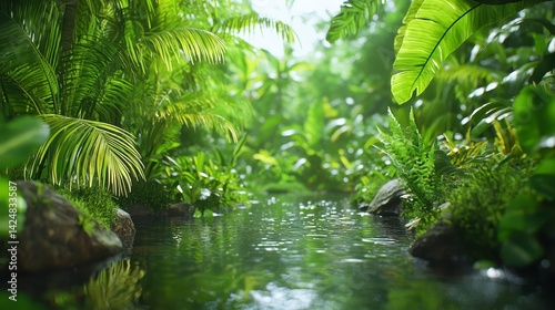 Lush Greenery Surrounding Tranquil Water Stream