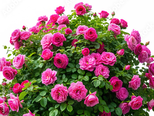 Lush Pink Rose Bush with Dense Green Foliage on white background ,PNG. AI Generated