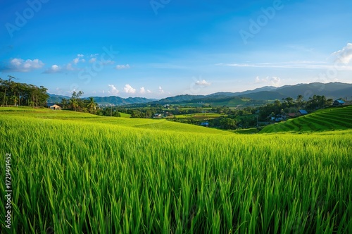 Lush Rice Terraces Surrounded by Natural Scenery