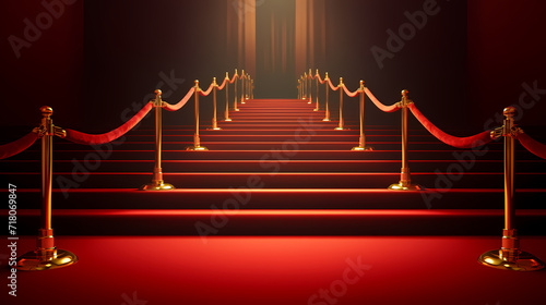 Luxurious and elegant red carpet staircase, holiday awards ceremony event