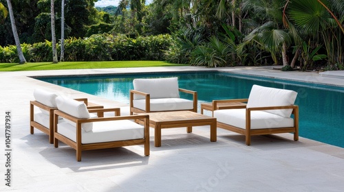 Luxurious Backyard Oasis with Pool and Tropical Patio Furniture