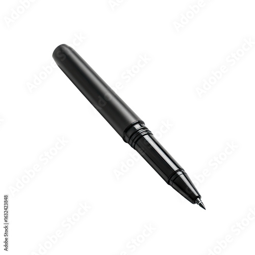 Luxurious black pen lying on white surface with elegant design and fine tip for professional writing and note-taking