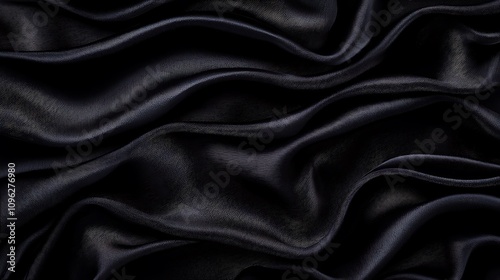 Luxurious Black Silk Fabric with Soft Waves and Smooth Texture Creating Elegant and Dramatic Background for Fashion, Textiles, and Design Projects
