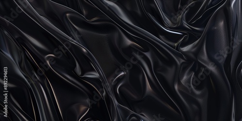 Luxurious Black Silk Satin Background with Flowing Fabric Waves, Perfect for Elegant and Cinematic Design Presentations