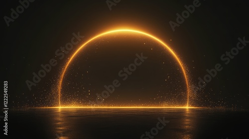 Luxurious glowing golden arc with radiant highlights and soft sparkles on a sleek black background