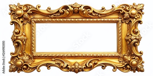 Luxurious Golden Frame, Classic Elegance, Aerial View, White Background Stock Photo
