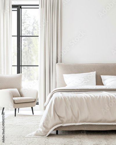 Luxurious hotel room interiors in warm tones with chic decor and natural lighting.