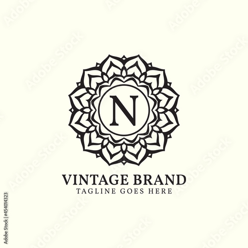 luxurious mandala vintage letter N vector logo design
