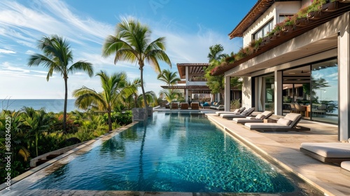 Luxurious resort architecture with pools, palm trees, and ocean views
