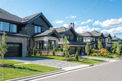 Luxurious suburban residence, sunny with well-maintained landscaping.