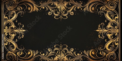 Luxurious vintage card with ornate golden floral design on a black background featuring intricate swirls and elegant detailing.
