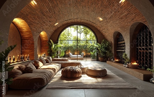 Luxurious Wine Estate Cellar with Investors Tasting and Discussing Branding Strategies