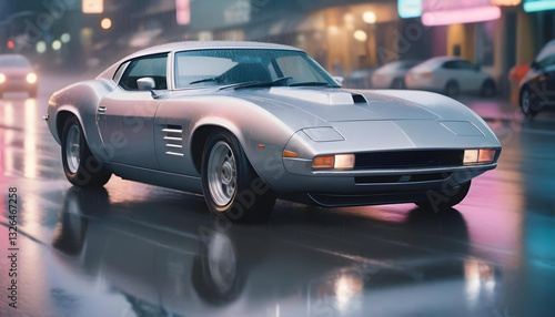 Luxury Car in the Rain Sleek Vehicle Navigating the City on a Rainy Day