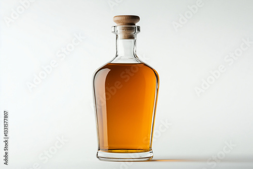 Luxury glass bottle of liquor isolated on white background, Selective focus whisky bottle on white background, Empty logo brandy bottle, Bourbon bottle with luxury cap design.