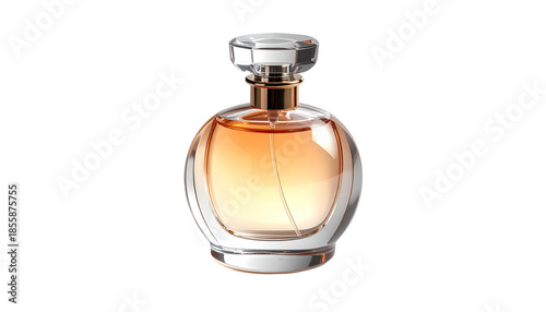 Luxury perfume bottle with soft shadows, isolated on white background, beauty ad concept