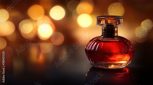 Luxury Red Perfume Bottle with Bokeh Background