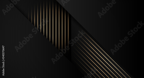Luxury Stripes Golden Lines Diagonal Overlap on Black Background with Copy Space for Text