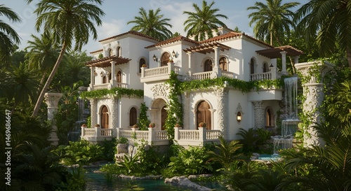 Luxury Tropical Villa with White Stone Facade and Lush Gardens | Upscale Real Estate and Vacation Getaway