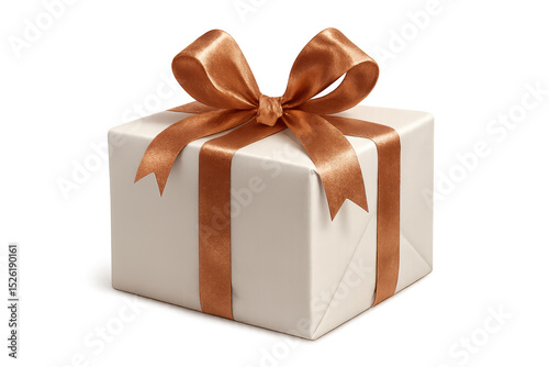 Luxury white gift box adorned with glossy brown ribbon, symbolizing celebration and sophistication against clean transparent backdrop