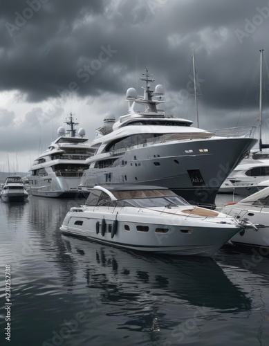 Luxury yachts in the marina during a stormy weather, waterfront, marina, stormy weather
