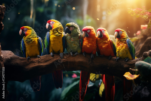 Macaw parrots. World Wildlife Day. Group of wild animals on nature background..Macaw parrots. World Wildlife Day. Group of wild animals on nature background.