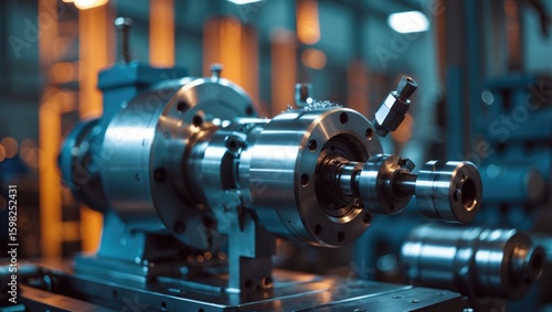 Machinery in manufacturing or industrial setting with high-precision components and mechanical parts.