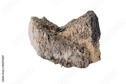 Macro mineral stone Schorl, Black Tourmaline on the feldspar on a white background